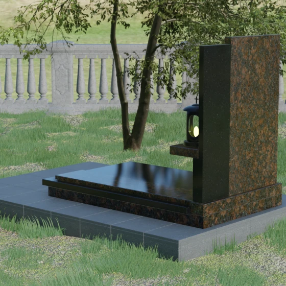 Кому подойдет: Данная модель является универсальной благодаря своему лаконичному и одновременно глубокому дизайну. Она станет достойным выбором как для мужчины, так и для женщины. Строгость линий и золотые акценты подчеркнут статус и мужество, а плавные изгибы верхней грани привнесут нотки женственности и нежности. Этот мемориал выбирают те, кто хочет выразить глубокое уважение и создать на кладбище место, преисполненное достоинства и тишины, где каждый элемент — от лампады до фактуры камня — говорит о вечной любви.