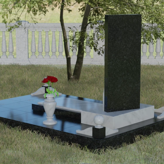 Для того чтобы мемориал максимально точно отражал характер ушедшего человека, данная модель доступна в восьми вариантах исполнения. Вы можете выбрать классическую глубину гранита Габбро-диабаз, благородную зелень Балтик грин, небесное сияние Блю Перл или огненную энергетику Лезниковского камня. Также доступны текстуры Амфиболита, Дымовского и Мансуровского гранитов, а для придания особой чистоты и света композицию можно выполнить из белоснежного мрамора Тассо. Такое разнообразие позволяет играть на контрастах, сочетая два вида камня (например, черный и красный или черный и белый), что делает памятный знак уникальным.