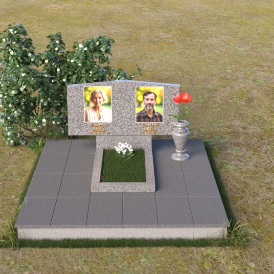 Форма этого памятника символизирует покой и защиту. Прямые линии и четкие грани говорят о стабильности и надежности, а скошенные углы смягчают строгость и добавляют нотку современности. Общая композиция создает ощущение умиротворения и вечности, напоминая о том, что память о близких будет жить в наших сердцах всегда.