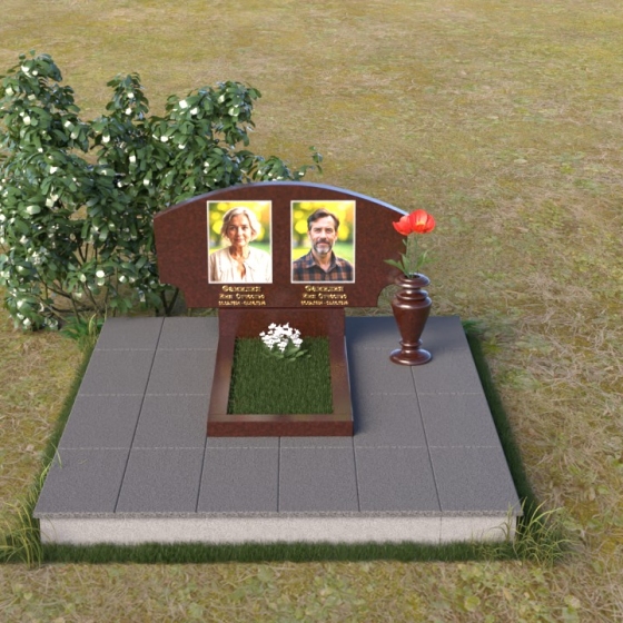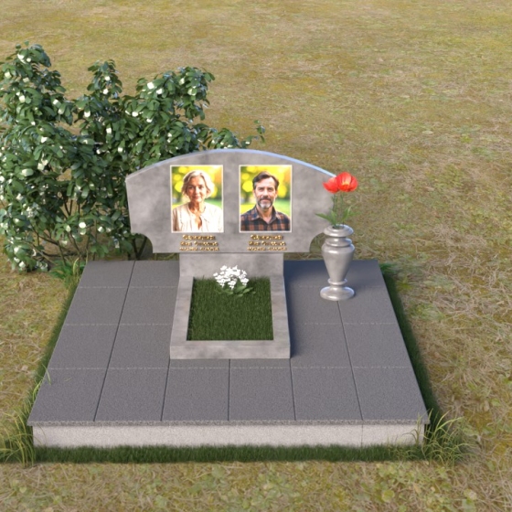 Эта мемориальная композиция, артикул ПГ023, воплощает собой сдержанную элегантность и глубокое уважение к ушедшим. Ее плавные, скруглённые линии словно рассказывают историю жизни, полной взлетов и падений, радостей и печалей, и теперь нашедшей свой покой. Верхняя часть стелы имеет мягкий, дугообразный изгиб, напоминающий о небесном своде, под которым души обретают вечный приют. Зеркальная полировка камня отражает свет, создавая ощущение легкости и воздушности, а контраст с матовой поверхностью гравировки портретов придает изображению глубину и выразительность. Простота формы не отвлекает от главного – светлых образов тех, кто дорог нашему сердцу.