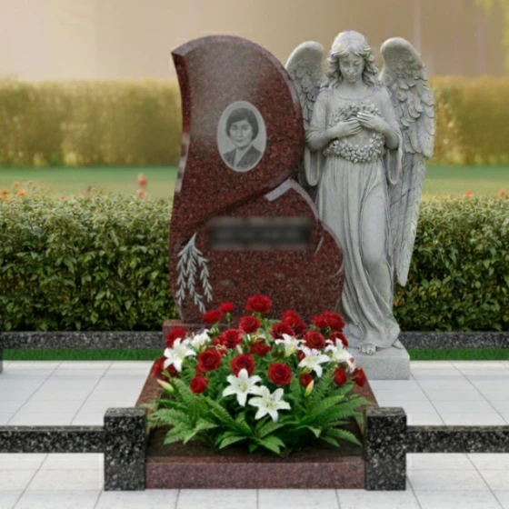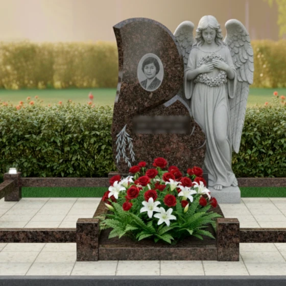 Этот мемориальный комплекс являет собой воплощение скорби и светлой надежды, где центральное место занимает скульптура ангела, словно оберегающего покой ушедшего. Плавные линии стелы, дополненные изящной гравировкой, контрастируют с монументальностью основания, создавая гармоничный и запоминающийся образ. Благодаря возможности выбора из восьми вариантов камня, включая семь видов гранита и благородный мрамор Тассос, памятник может обрести индивидуальный облик, соответствующий характеру и памяти дорогого человека.