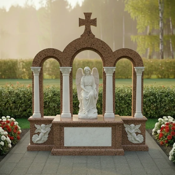 Представляем вашему вниманию мемориальную композицию ПН 044 – произведение искусства, воплощающее в камне глубочайшие чувства и вечную память. Этот монументальный ансамбль создан для тех, кто стремится увековечить светлый образ ушедшего, выбирая для этого не просто надгробие, а архитектурный шедевр, способный выдержать испытание временем и стихиями, сохраняя свою первозданную красоту.