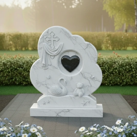 Форма этого мемориального комплекса глубоко символична. Плавные линии и мягкие очертания стелы олицетворяют покой и умиротворение, напоминая о тихой гавани, где душа находит вечный приют. Драпировка вокруг креста говорит о скорби, но одновременно и о защите, которую дарует вера. Сердце в центре – это не просто символ любви, а средоточие всех чувств, которые связывают нас с ушедшим. Лебедь и мишка, окруженные бабочками и звездами, создают образ невинности, чистоты и вечной нежности, напоминая о хрупкости жизни и красоте души. Этот памятник – это не прощание, а обещание помнить, любить и хранить светлый образ ушедшего человека в своем сердце навсегда.