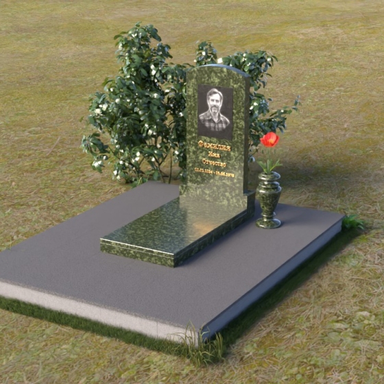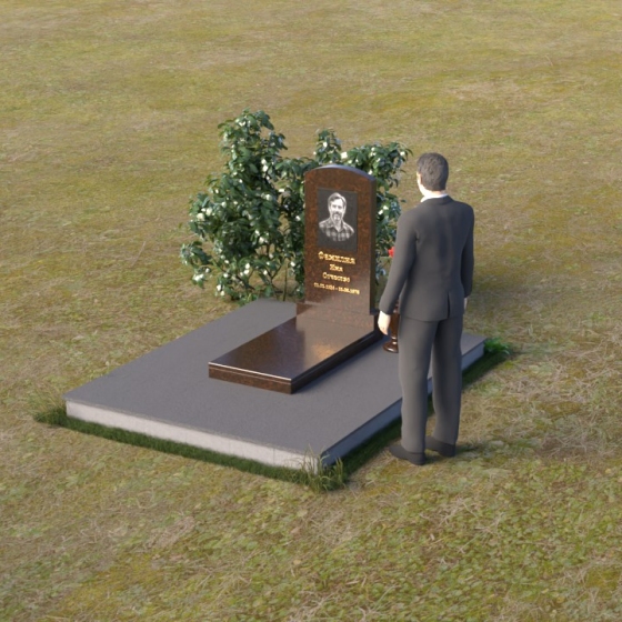 Благодаря своей лаконичной форме, эта стела предоставляет широкие возможности для оформления. Портрет усопшего будет гармонично смотреться как в верхней части стелы, так и чуть ниже центра. Золотое тиснение имени и дат жизни будет элегантно выделяться на фоне полированного камня, создавая четкий и легко читаемый образ. Небольшая тумба, расположенная перед стелой, может служить местом для возложения цветов и памятных вещей. Мы рекомендуем выбирать для этой модели сдержанные, лаконичные шрифты, которые подчеркнут общую элегантность композиции. Подумайте о возможности добавления небольшого бронзового барельефа или скульптуры, отражающей профессию или увлечения ушедшего человека. Это добавит индивидуальности и сделает место памяти еще более личным и значимым. Ваза, выполненная в едином стиле с монументом, завершит композицию и придаст ей законченный вид.