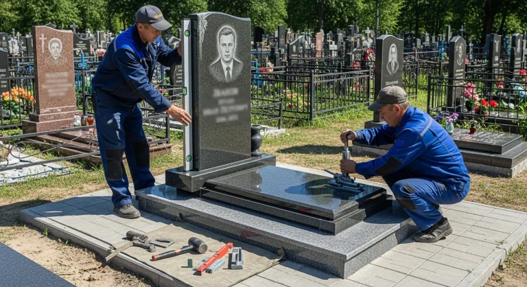 Ответ: Для проведения любых работ на кладбище, включая установку памятника, необходимо получить официальное разрешение от администрации кладбища. Обычно для этого требуется предоставить свидетельство о смерти и документы, подтверждающие право на захоронение. Мы знаем, что сбор справок может быть утомительным процессом, поэтому мы оказываем помощь в оформлении всех необходимых документов.