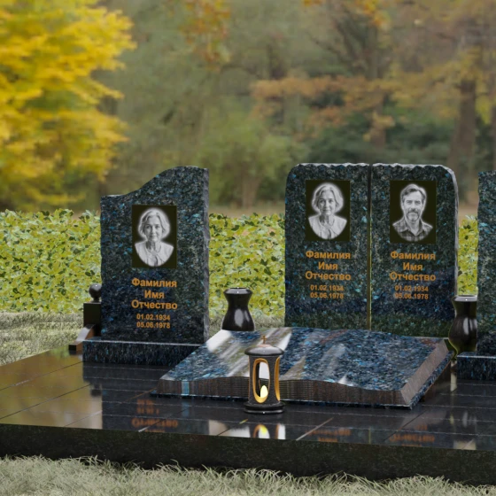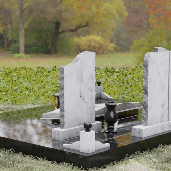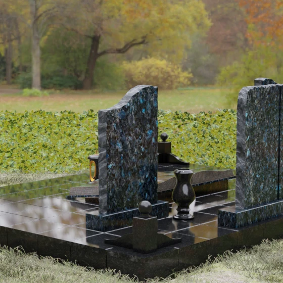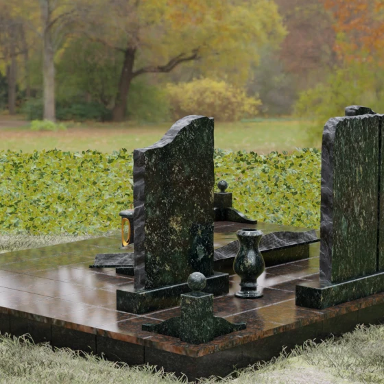 Каждая личность уникальна, и материал должен отражать характер ушедшего человека. Мы предлагаем этот комплекс в 8 эксклюзивных цветовых решениях. Вы можете выбрать классический глубокий черный гранит Габбро-диабаз для придания строгости, или отдать предпочтение благородному мрамору Тассо, если стремитесь к светлой, возвышенной эстетике. Для тех, кто ценит природную текстуру, идеально подойдут гранит амфиболит с его неповторимым рисунком или лесной гранит Балтик грин. Также доступны гранит Блю Перл с жемчужным отливом, насыщенный Дымовский, аристократичный красный Лезниковский и белоснежный Мансуровский гранит.