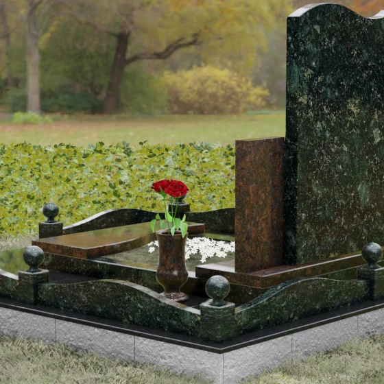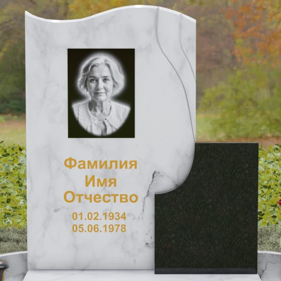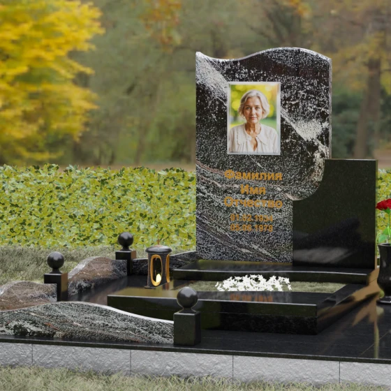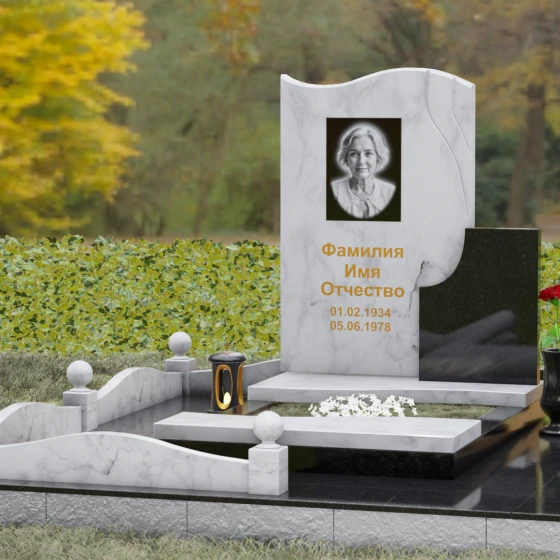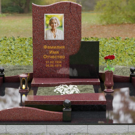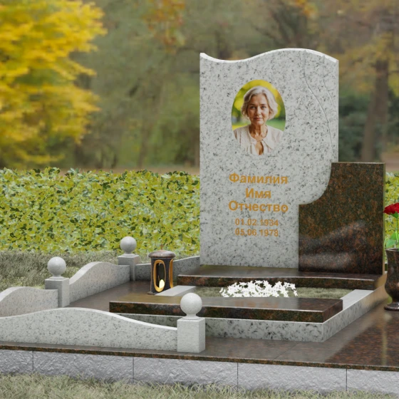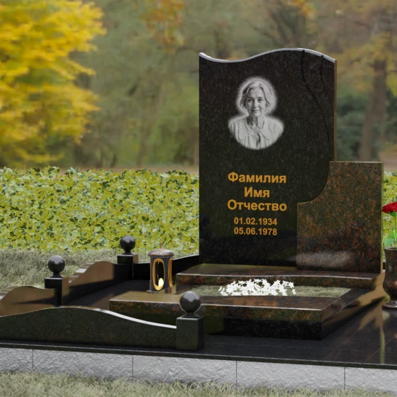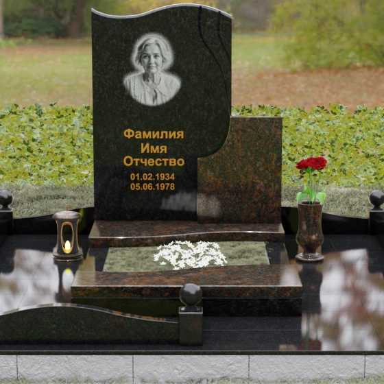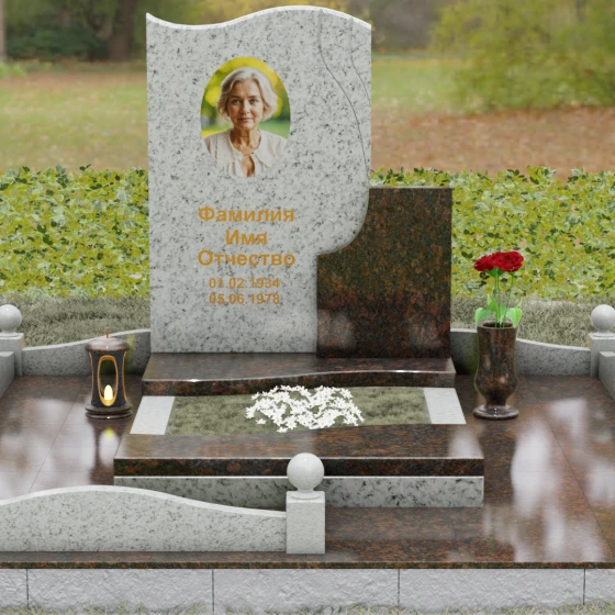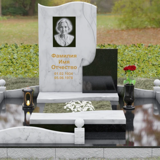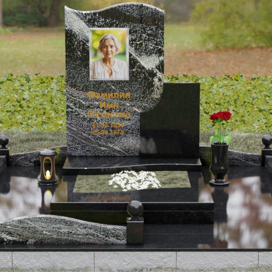Кому подойдет: Благодаря своим изящным изгибам, плавным линиям «волны» и возможности комбинирования светлых и темных пород камня, этот мемориал идеально подходит для оформления женского захоронения — маме, супруге, дочери или сестре. Он воплощает в себе нежность, чистоту и светлую печаль. Однако при выборе строгого черного гранита Габбро-диабаз в сочетании с более темными акцентами, модель приобретает сдержанный, мужественный вид, становясь достойным символом памяти для отца, мужа или брата. Это универсальное решение для тех, кто ценит современный стиль и безупречное качество исполнения.