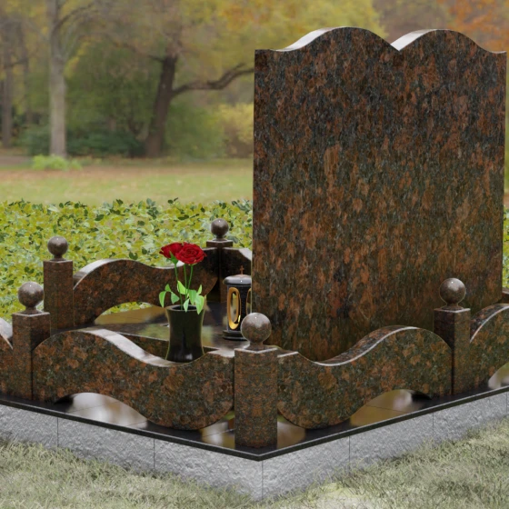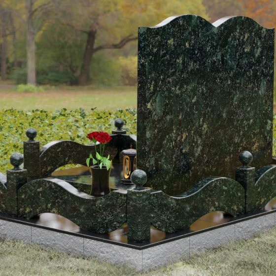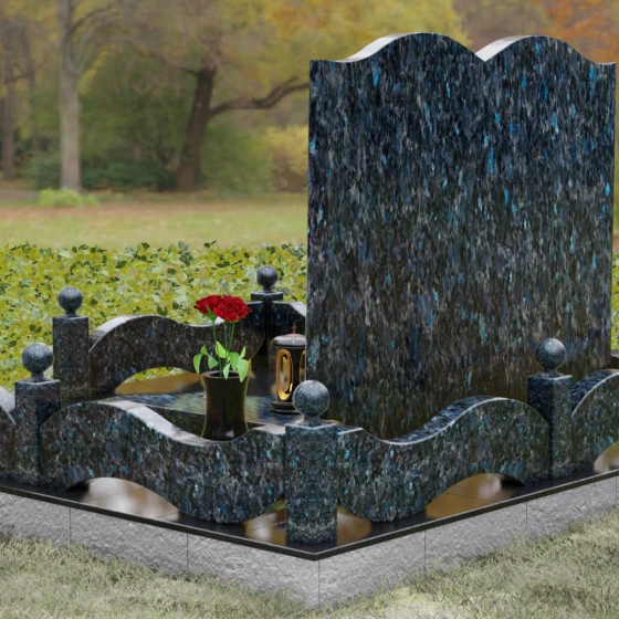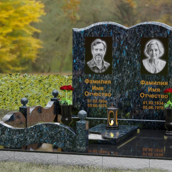 Для создания этого мемориала мы используем только высокоплотные породы камня, отличающиеся минимальным водопоглощением и абсолютной морозостойкостью. Модель доступна в восьми эксклюзивных вариантах исполнения. Вы можете выбрать глубокий черный гранит Габбро-диабаз для классической строгости, благородный гранит Балтик грин с его лесными переливами, изысканный гранит Блю Перл с мерцающими кристаллами или теплый гранит Дымовский. Также доступны гранит амфиболит, насыщенно-красный гранит Лезниковский, белоснежный гранит Мансуровский и безупречный мрамор Тассо. Широкая палитра позволяет подобрать материал, максимально точно отражающий характер и статус усопших.
