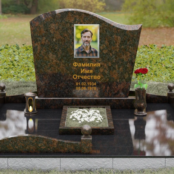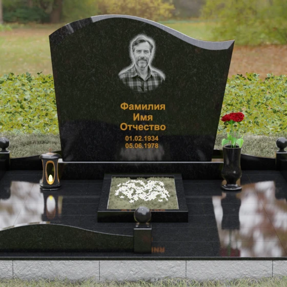 На широкой плоскости стелы идеально располагается как классическая гравировка портрета, так и цветная фотокерамика в овальной нише. Благодаря большой полезной площади камня, вы можете дополнить оформление эпитафией или декоративными символами, не перегружая композицию. Глубокий контраст между полированным фасадом и матовыми торцами выгодно выделяет надписи, сделанные сусальным золотом или методом глубокой вырубки. Этот памятник станет достойным воплощением вашей любви и бесконечного уважения, сохраняя память о близком человеке в самом прочном и красивом материале, созданном природой.