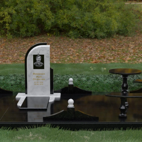 Кому подойдет: Данный мемориальный комплекс станет идеальным выбором для тех, кто ищет премиальное решение «под ключ». Благодаря своей универсальной эстетике, сочетающей строгость и мягкость линий, он одинаково достойно будет смотреться как на мужском, так и на женском захоронении. Артикул 164 выбирают семьи, ценящие архитектурную целостность, надежность и желающие создать на месте упокоения атмосферу умиротворения и вечного достоинства.