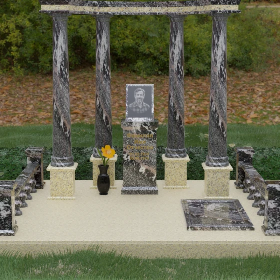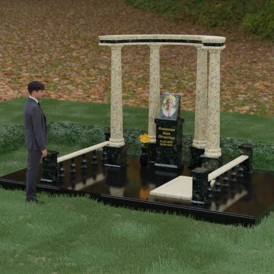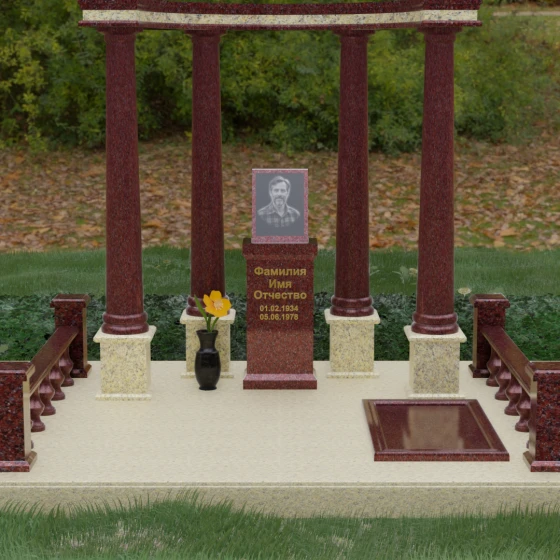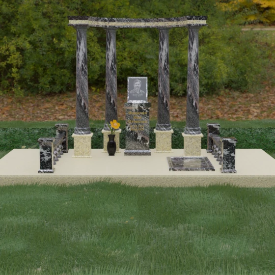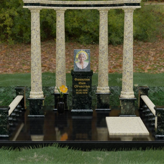 Выбор этого мемориального комплекса — это выбор в пользу безупречного качества и высокой эстетики. Сочетание мощи природного камня и изящества античных архитектурных форм позволит Вам создать достойное место памяти, которое будет вызывать уважение и трепет у многих поколений Вашей семьи.