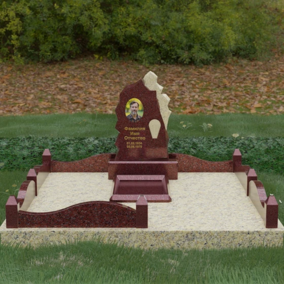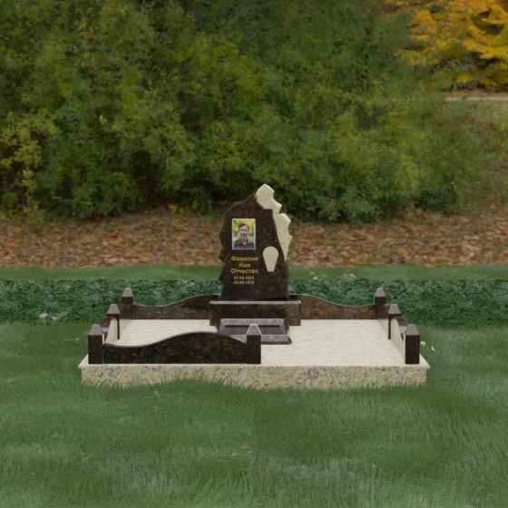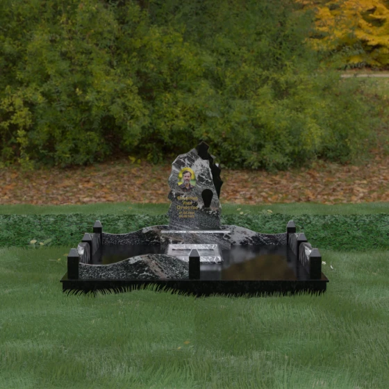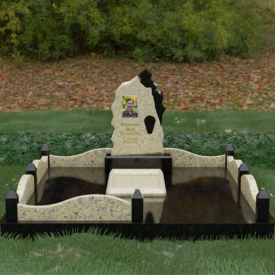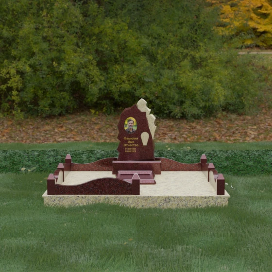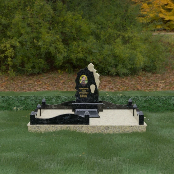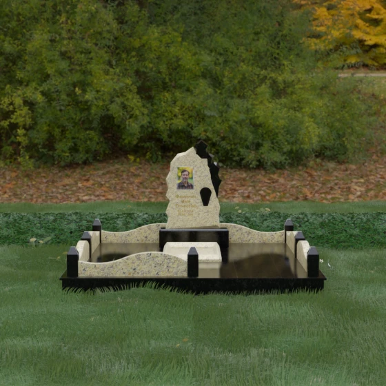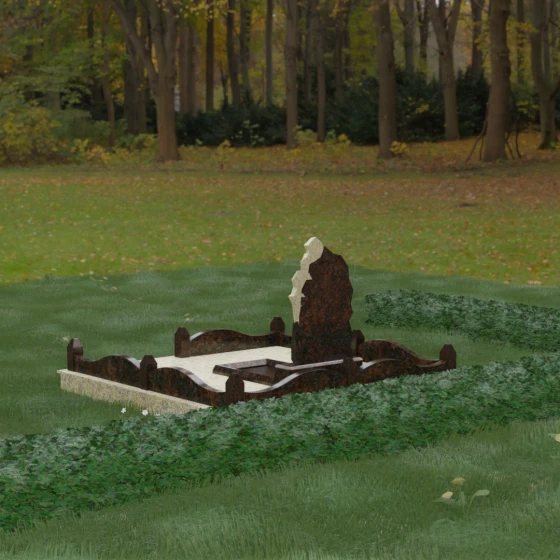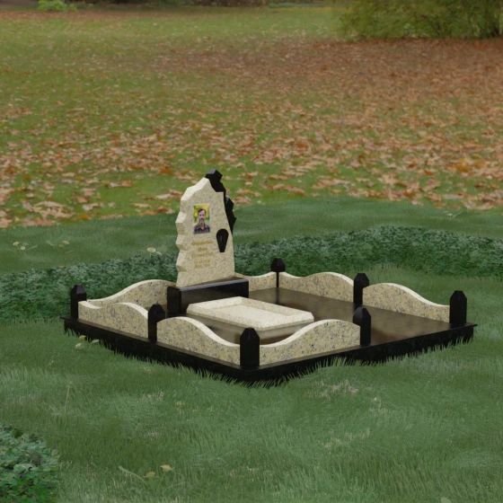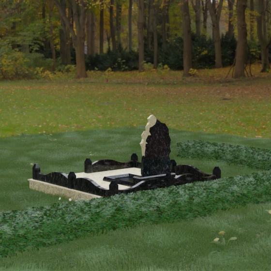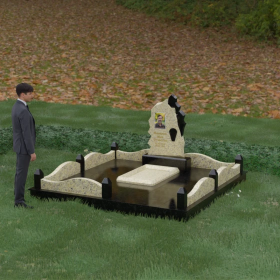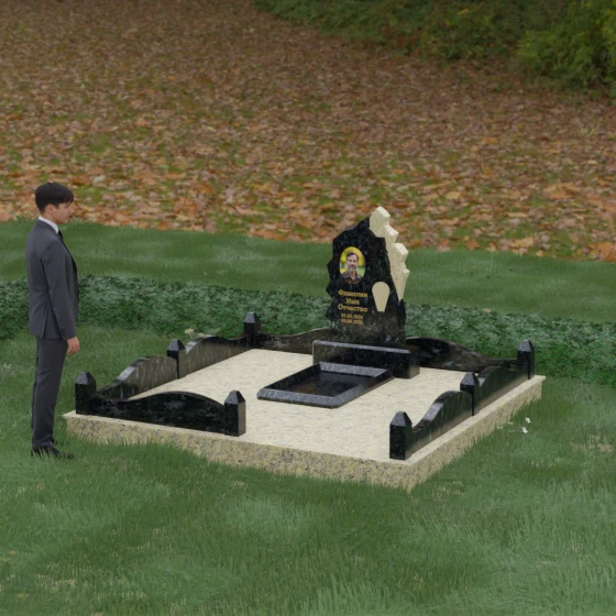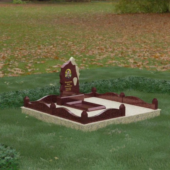 Основным материалом для создания данного комплекса служит высокопрочный натуральный гранит — камень, который по праву считается эталоном долговечности. Благодаря своей исключительной плотности, он практически не впитывает влагу, что гарантирует защиту от растрескивания даже в условиях суровых российских зим с резкими перепадами температур. Массивность конструкции и использование сплошной надгробной плиты, закрывающей всю внутреннюю площадь участка, обеспечивают максимальную устойчивость комплекса. Такая плита не только придает ансамблю законченный, благородный вид, но и является практичным решением: она предотвращает проседание грунта и рост сорной травы, сохраняя место захоронения в идеальном порядке на десятилетия без необходимости частого ухода.