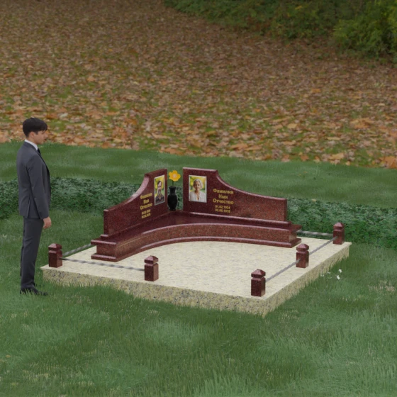 Каждая линия этого мемориального ансамбля наполнена глубоким смыслом. Волнообразные вершины символизируют бесконечное движение жизни и переход души в иное состояние, напоминая о том, что любовь вечна. Ступенчатое основание — это аллегория жизненного пути, где каждый уровень представляет собой определенный этап достижений и мудрости. Сочетание двух контрастных оттенков камня в одной композиции олицетворяет единство земного и небесного, света и тени, радости прошлых дней и светлой печали настоящего. Этот проект идеально подходит для парного захоронения, подчеркивая неразрывную связь двух судеб под общей защитой благородного камня.