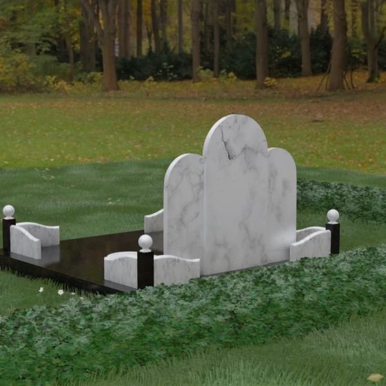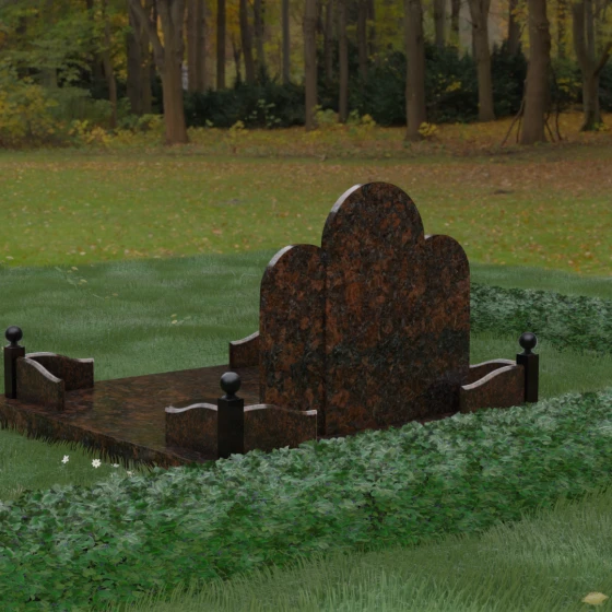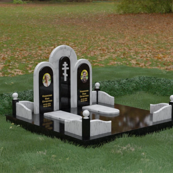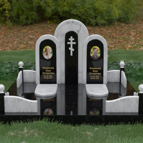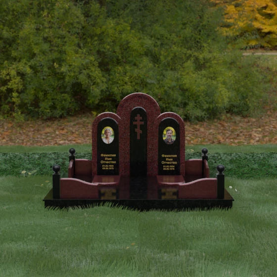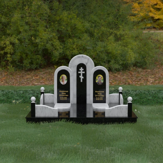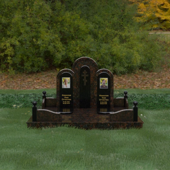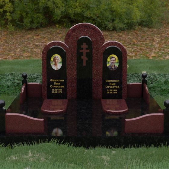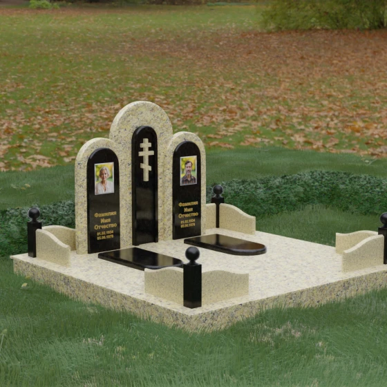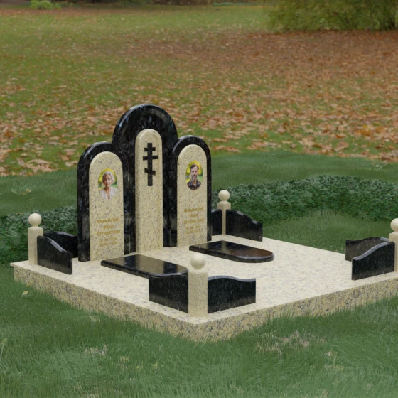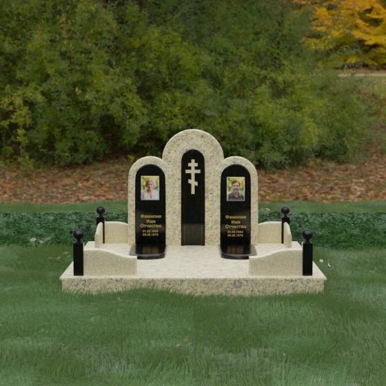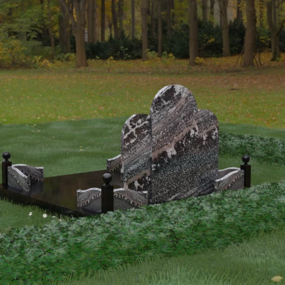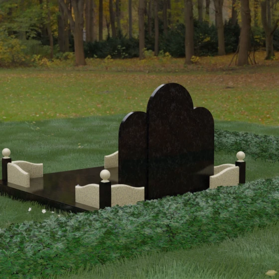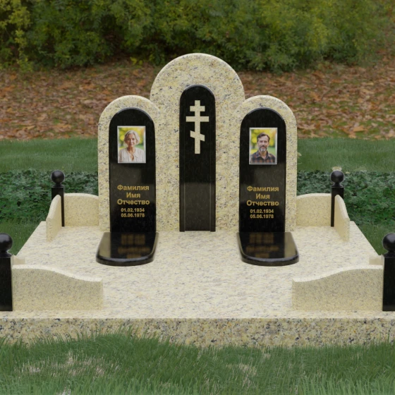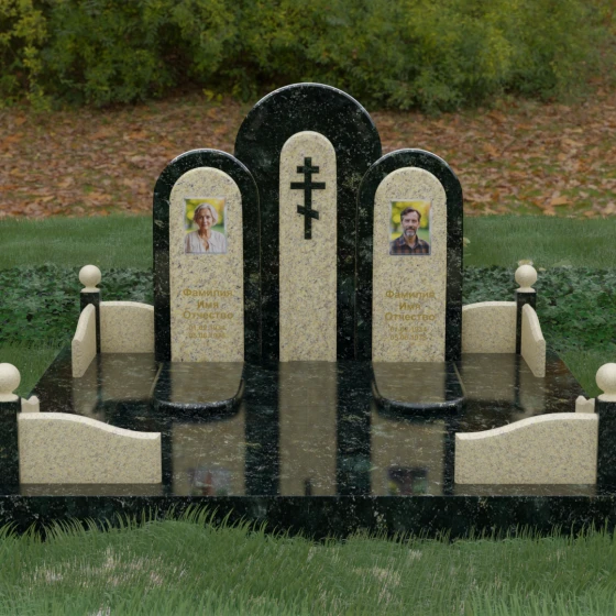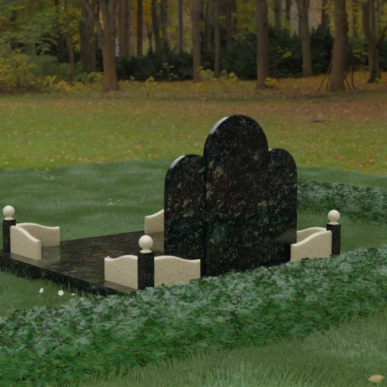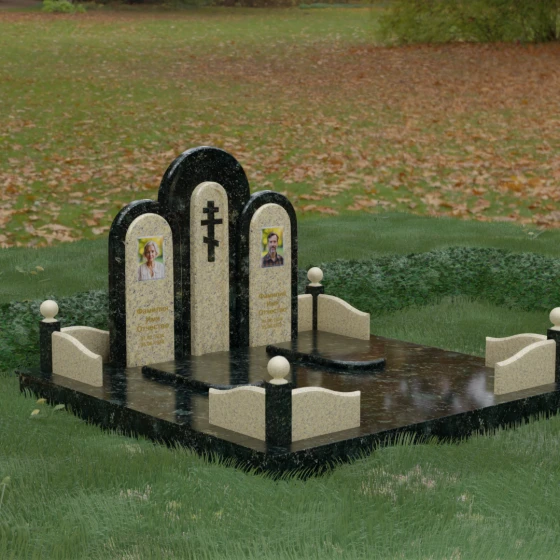 Продуманная геометрия изделия открывает широкие возможности для художественного наполнения. Светлые боковые панели служат идеальным холстом для нанесения портретов и памятных надписей. Благодаря контрастному фону, гравировка имен и дат выглядит отчетливо даже в пасмурную погоду, а золочение букв придаст мемориалу особую статусность. Мы понимаем, как важно передать индивидуальность ушедшего человека, поэтому предлагаем исполнение данной модели в 8 цветовых решениях. В зависимости от ваших предпочтений и характера близкого человека, гранитный монумент может быть изготовлен из таких благородных материалов, как: