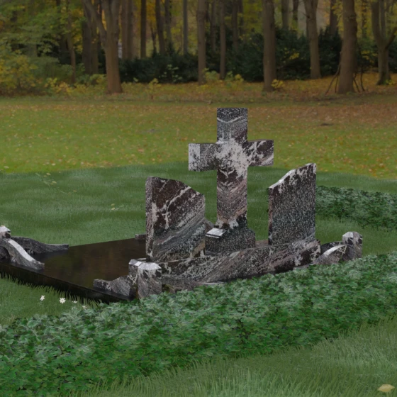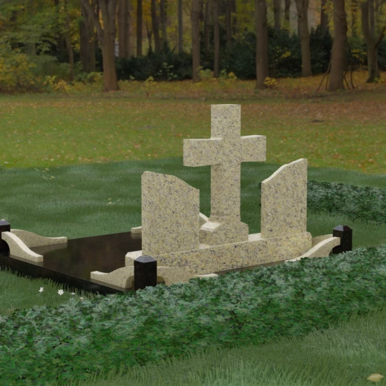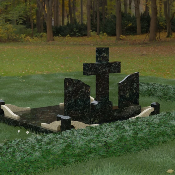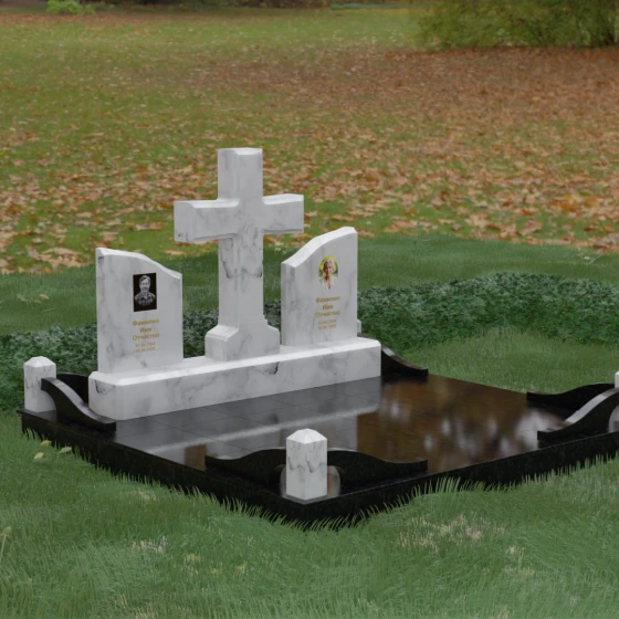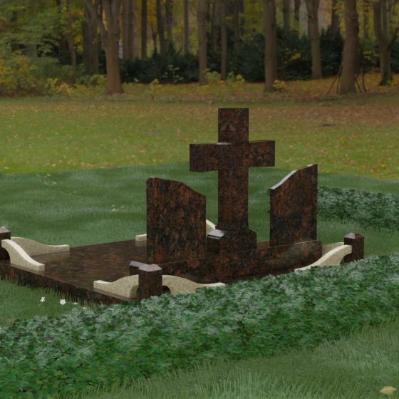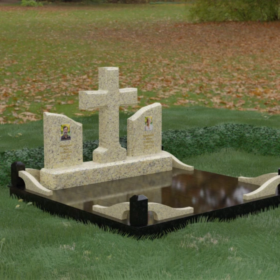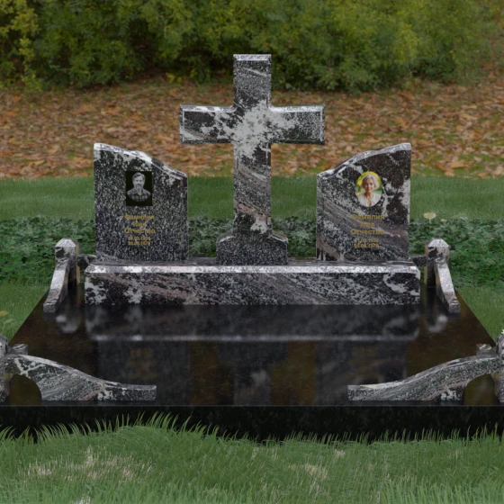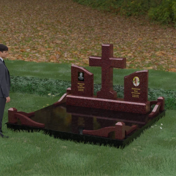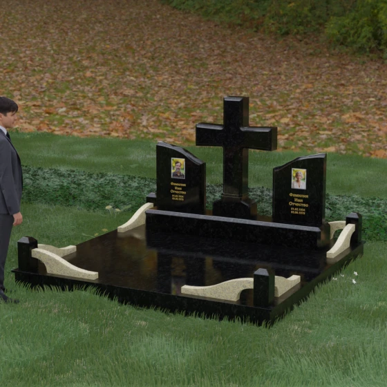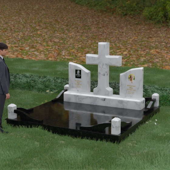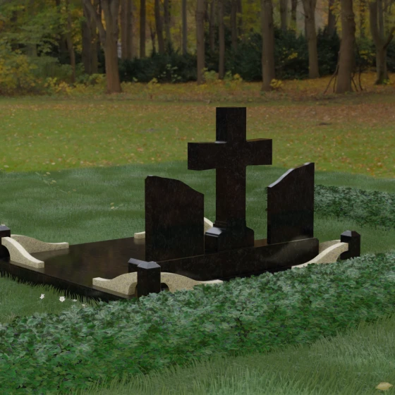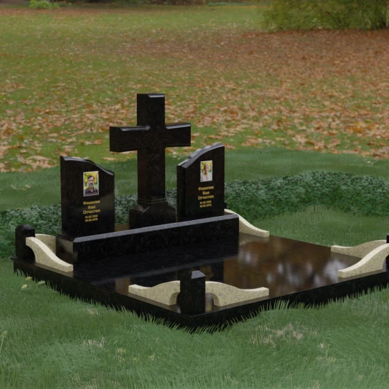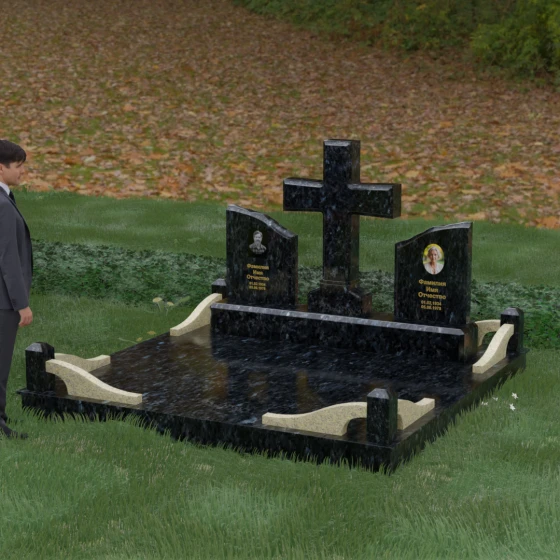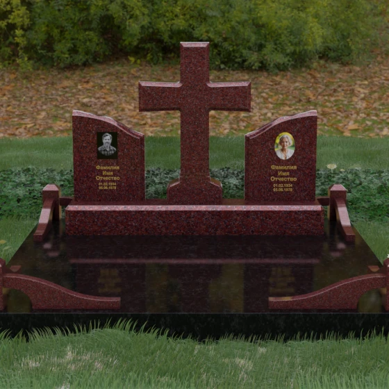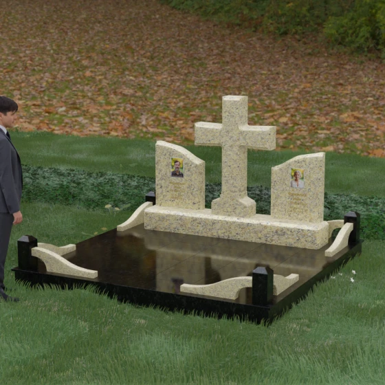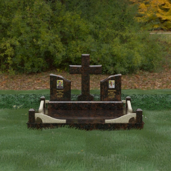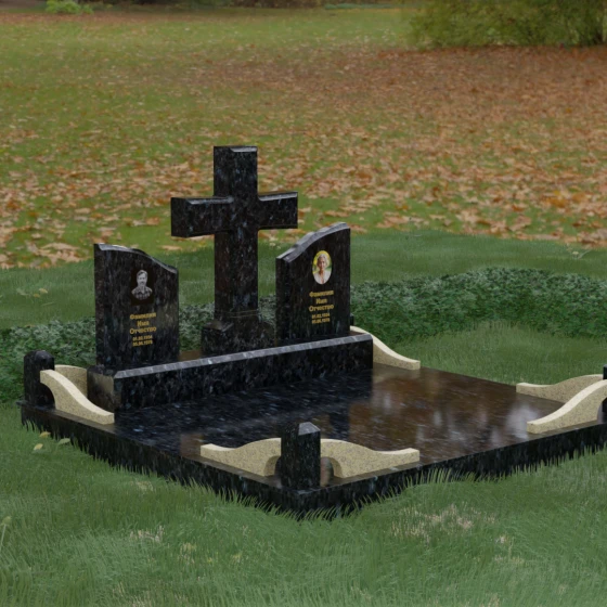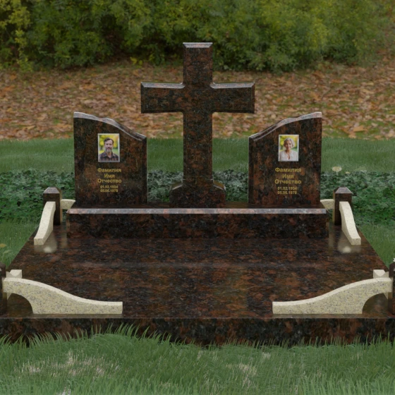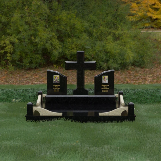 Кому подойдет: Данный архитектурный комплекс идеально подходит для парного захоронения (родителям, супругам). Благодаря наличию центрального креста и двух отдельных плит, он объединяет близких людей в общую композицию, сохраняя при этом индивидуальность каждого. Это выбор тех, кто стремится создать достойное родовое место памяти, сочетающее в себе религиозные традиции, современную европейскую эстетику и непревзойденную долговечность природного камня.