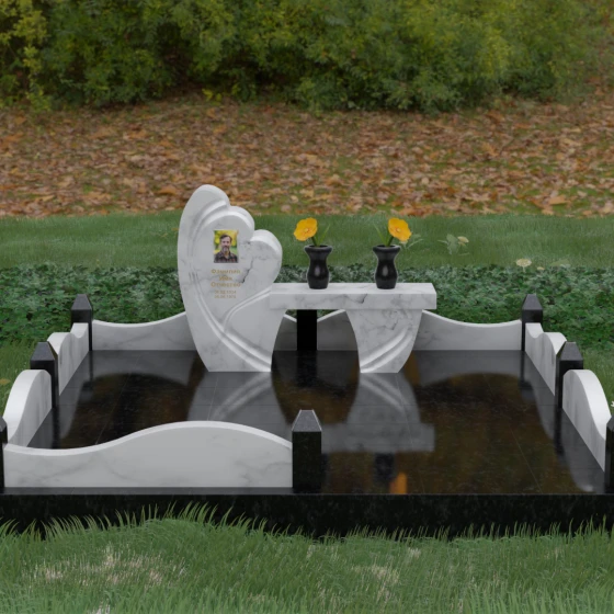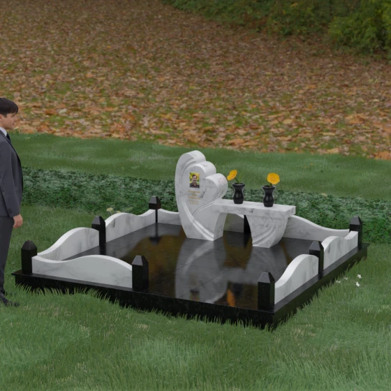Кому подойдет: Этот мемориальный комплекс — идеальный выбор для тех, кто хочет выразить безграничную любовь и нежность. Благодаря мягким формам и символике сердца, ансамбль чаще всего выбирают для оформления места памяти маме, жене, дочери или сестре. Он подойдет людям, ценящим современный дизайн и монументальную надежность, тем, кто хочет превратить место посещения в зону эстетического созерцания и спокойного размышления о вечном.