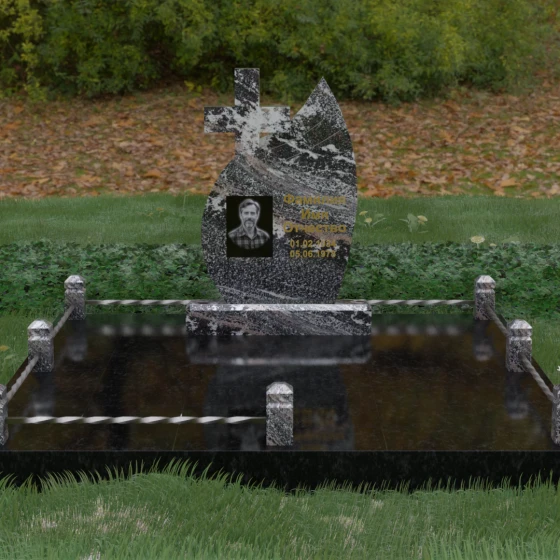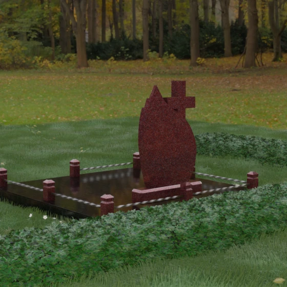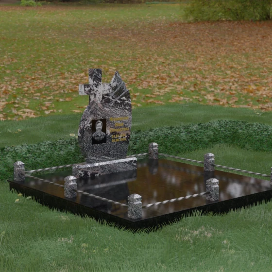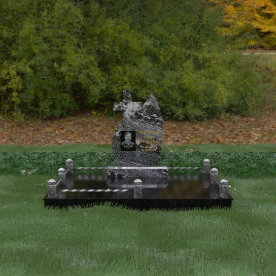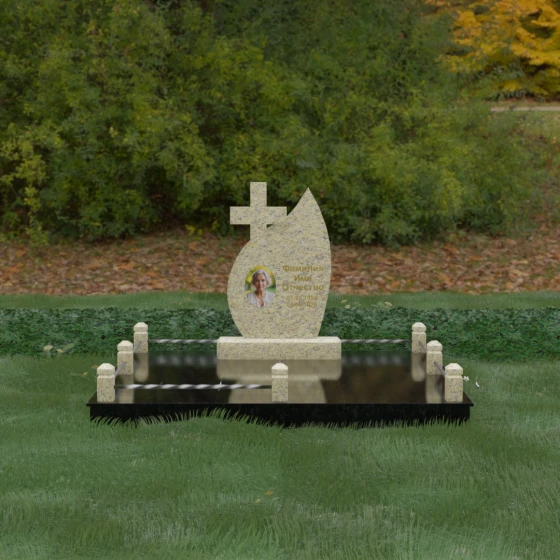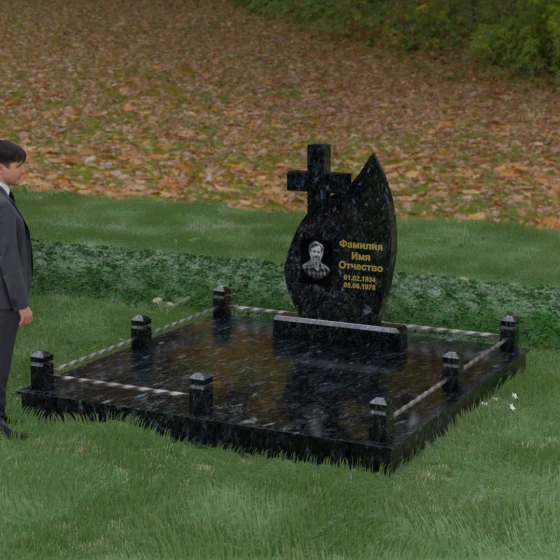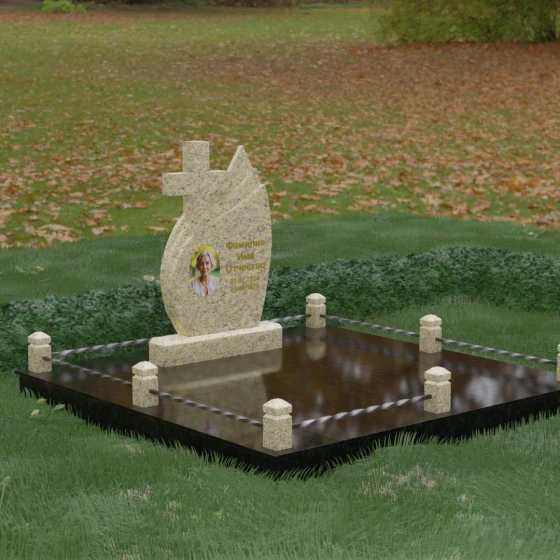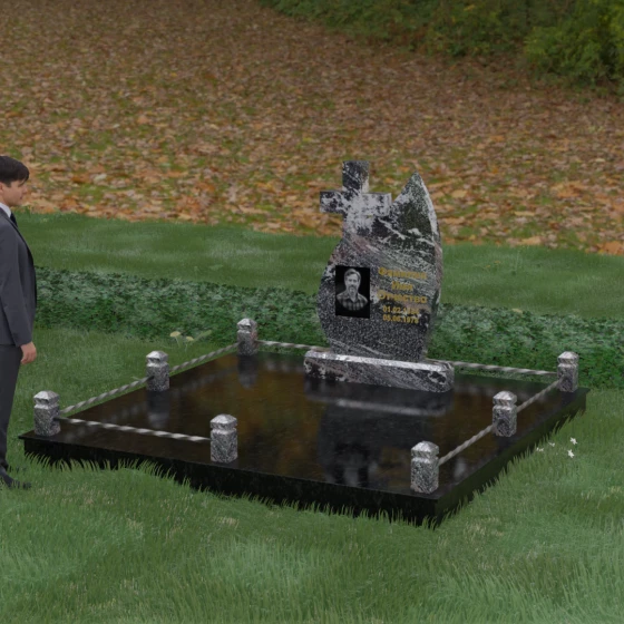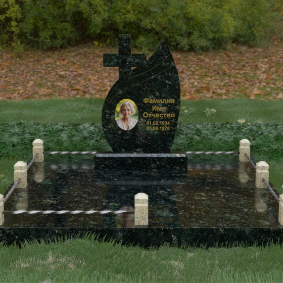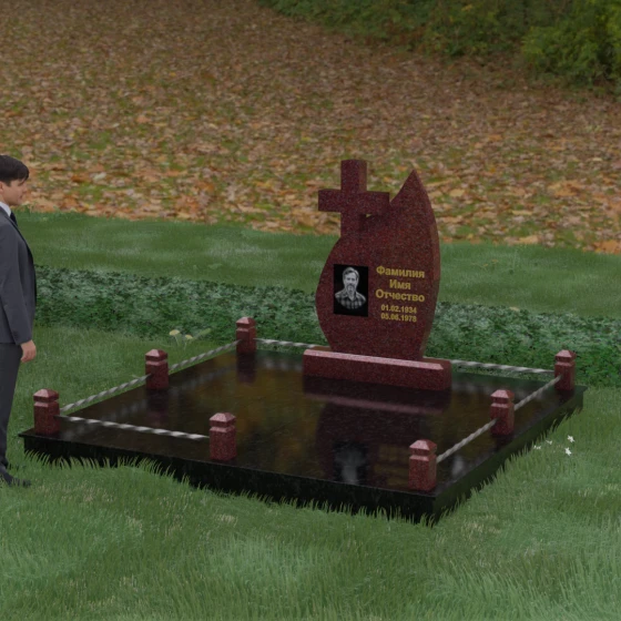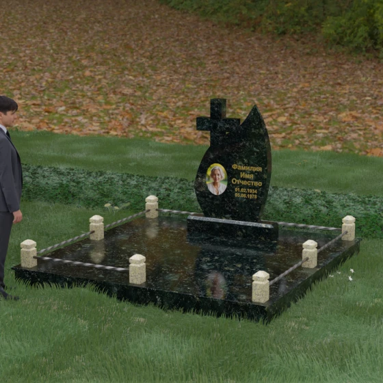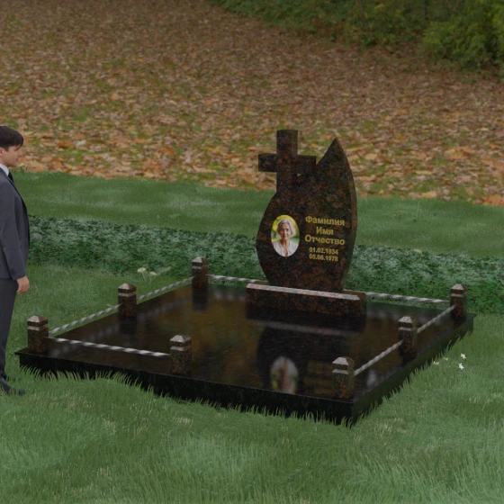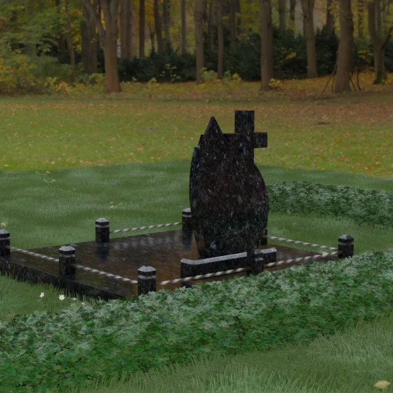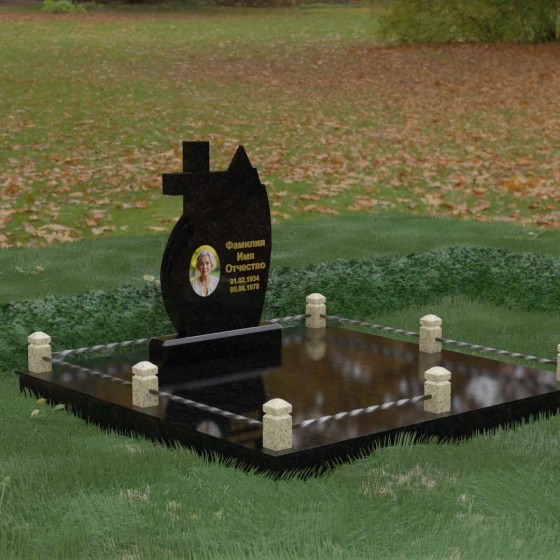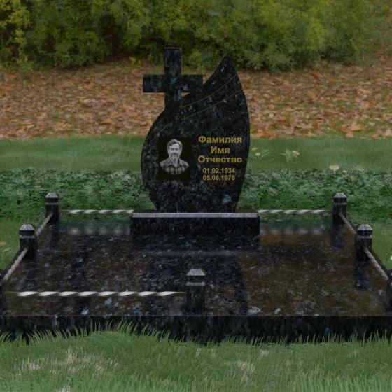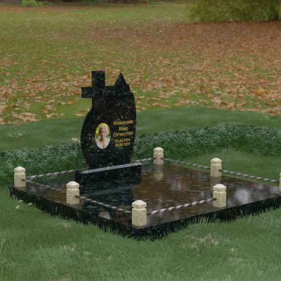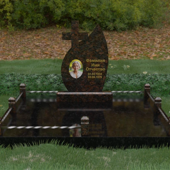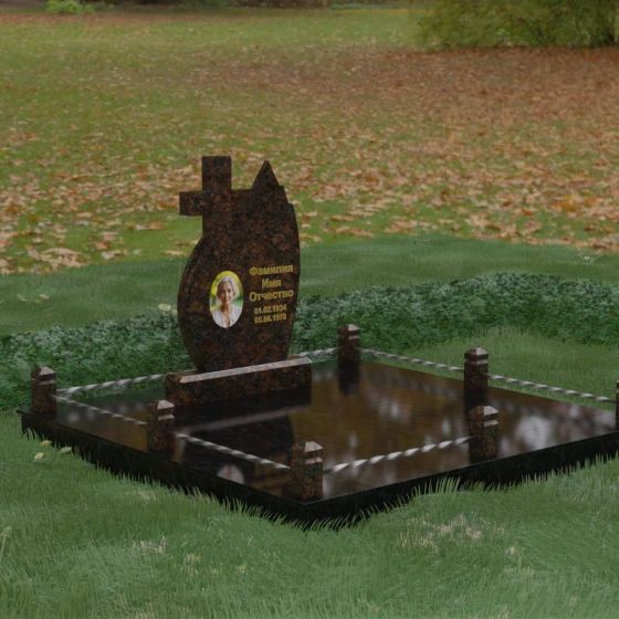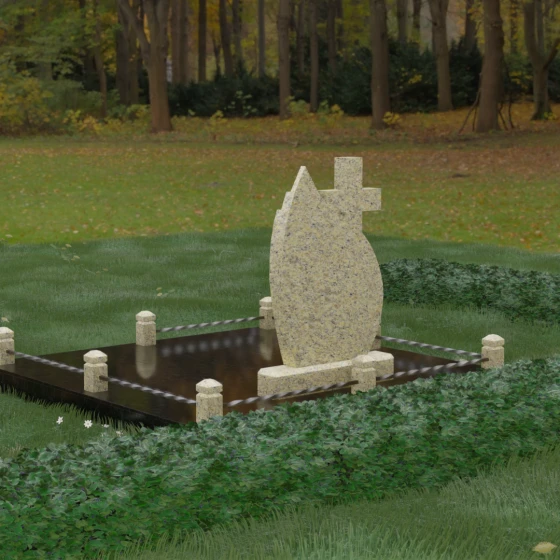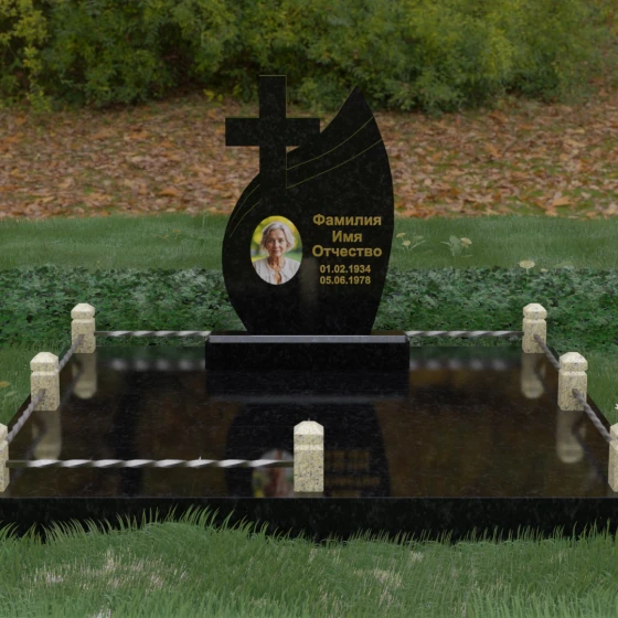 Кому подойдет данная модель: Благодаря сочетанию строгого креста и мягких, женственных линий стелы, этот вариант является универсальным и глубоко символичным. Он станет достойным выбором для оформления места памяти матери, жены, сестры или дочери — женщины, чья жизнь была наполнена любовью и добротой. Плавные изгибы камня подчеркивают нежность образа, в то время как общая монументальность конструкции говорит о вечной памяти и невосполнимости утраты. Этот комплекс выбирают те, кто ценит эстетику модерна, чистоту линий и хочет обеспечить безукоризненный вид участка на долгие годы без лишних хлопот.