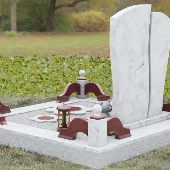 Данный мемориальный комплекс — это воплощение эстетики и надежности. Сложная геометрия стелы, дополненная профессионально выполненным цоколем и декоративными элементами, превращает место памяти в благородный символ любви, который не подвластен времени и природным стихиям.