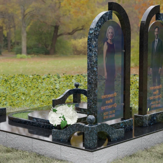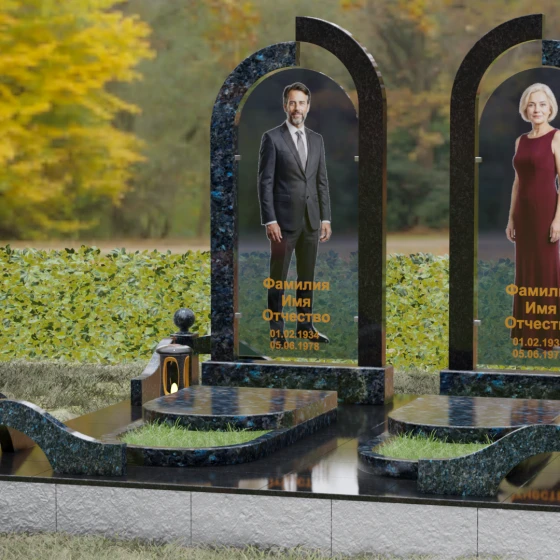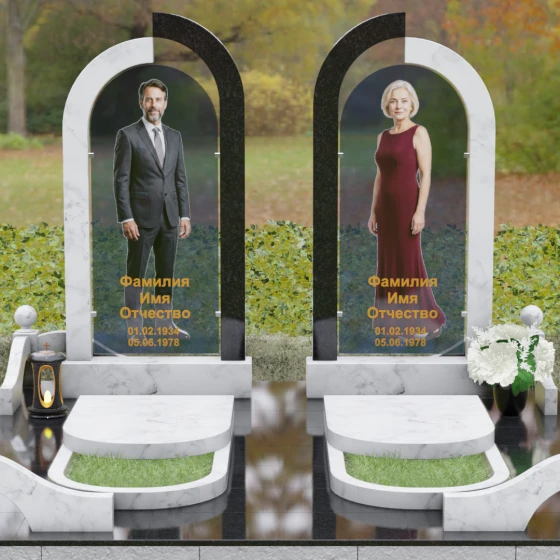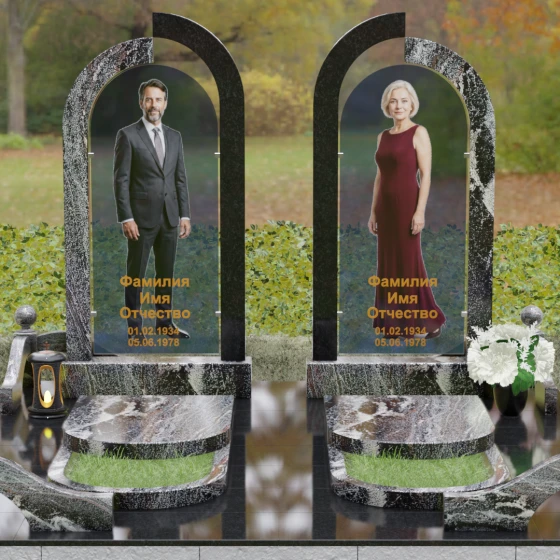 Кому подойдет: Данный мемориальный комплекс — идеальный выбор для оформления семейного захоронения (мужа и жены, родителей). Его выбирают те, кто ценит современный европейский стиль, сочетающий в себе традиционную прочность камня и инновационные технологии художественного оформления. Это выбор для людей, стремящихся уйти от тяжеловесных форм в сторону света, пространства и эстетического совершенства, сохраняя при этом фундаментальность и надежность конструкции.