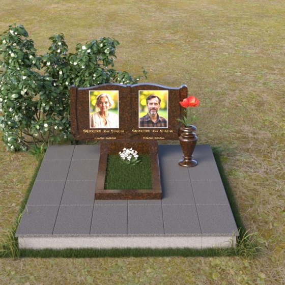 Оформление: Для данной формы памятника оптимальным будет размещение портретов усопших в верхней части стелы, под крестами. Имена, отчества и фамилии, а также даты жизни, рекомендуется выгравировать под портретами, используя строгий, классический шрифт. Можно добавить эпитафию, отражающую самые важные черты характера и жизненные ценности усопших.