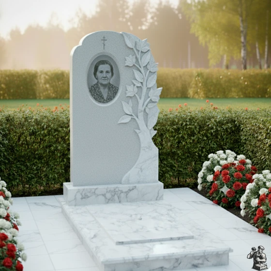 Этот мемориальный комплекс сочетает в себе строгость и нежность, создавая образ светлой памяти и вечной жизни. Плавные линии стелы, увенчанной резным "Древом Жизни", символизируют продолжение рода и неувядающую красоту души. Модель доступна в восьми вариантах исполнения, предлагая выбор из семи видов гранита и благородного мрамора Тассос, что позволяет создать мемориал, отражающий индивидуальность усопшего.
