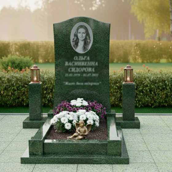 Представленный мемориальный комплекс выполнен из высококачественного гранита — материала, который по праву считается эталоном прочности и долговечности. Гранит обладает уникальной плотностью, что обеспечивает его исключительную устойчивость к любым погодным условиям, будь то суровые морозы, палящее солнце или проливные дожди. Его низкая пористость гарантирует, что камень не будет впитывать влагу и разрушаться со временем, сохраняя свой первозданный вид на протяжении веков. Зеркальная полировка поверхности не только придает граниту благородный блеск, но и защищает его от внешних воздействий, делая уход за памятником минимальным. Этот материал не требует особого ухода, достаточно периодически протирать его влажной тканью, чтобы сохранить его безупречный вид. Выбирая гранит, вы выбираете вечность, гарантируя, что память о близком человеке будет увековечена в камне, который не подвластен времени.