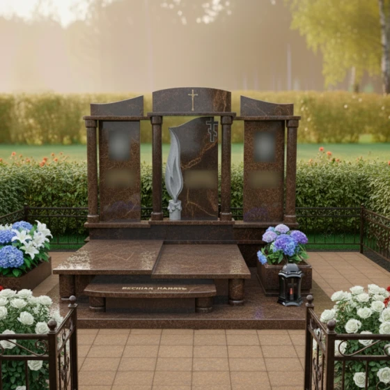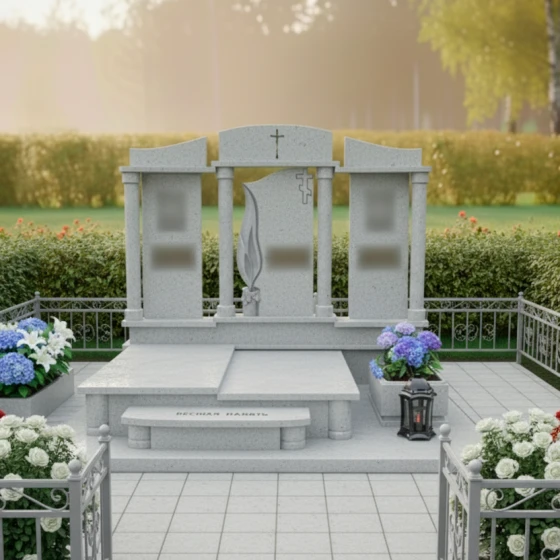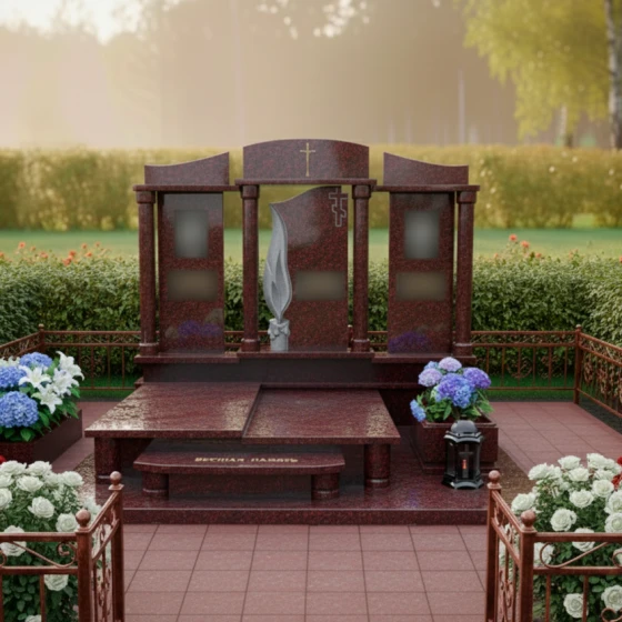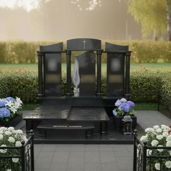 Завершая описание, стоит отметить, что этот мемориальный ансамбль создан для тех, кто стремится запечатлеть историю семьи в камне. Продуманная до мелочей инженерия — от системы водоотвода с плит до армирования фундамента — гарантирует, что память о дорогих людях останется неизменной на протяжении веков, а сам участок всегда будет выглядеть достойно и ухоженно.