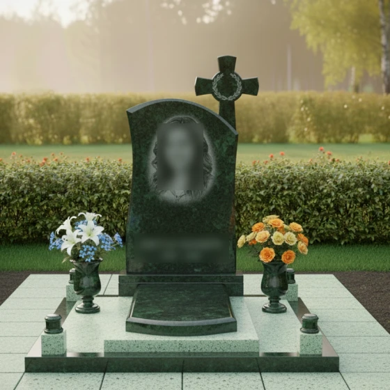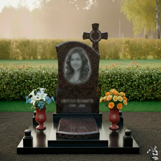 • Комплектация: Стела, постамент, сплошная надгробная плита, система декоративных столбиков, две вазы из аналогичного материала.