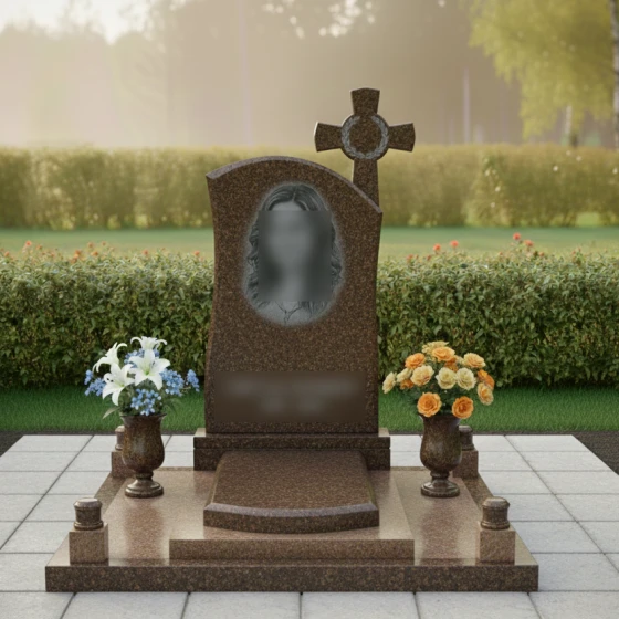 • Геометрия: Вертикальная асимметричная стела с интегрированным крестом и художественной резьбой.