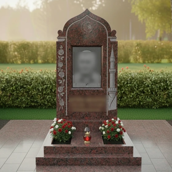 Кому подойдет: Данная модель является универсальным решением для оформления женского или семейного захоронения в мусульманской традиции. Благодаря сочетанию флористических мотивов (розы) и религиозной символики, она идеально подходит для выражения любви и глубокого уважения к матери, супруге или дочери. Это выбор тех, кто ценит эстетическую завершенность, надежность конструкции и желает увековечить память о близком человеке в форме, лишенной суеты и случайных деталей.